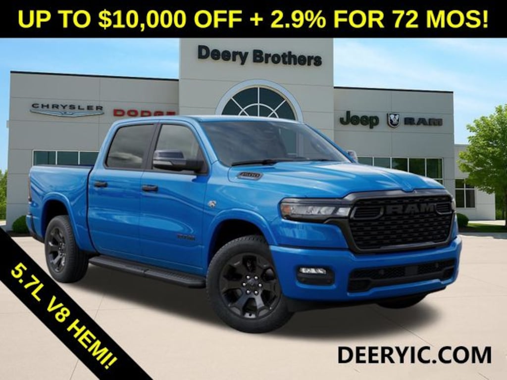 Bed Utility Group (Exterior 115V AC Outlet, MOPAR 4 Adjustable Cargo Tie-Down Hooks, MOPAR Spray in Bedliner, and Pick-Up Box Lighting), Big Horn Level 2 Equipment Group (115V Auxiliary Power Outlet, 115V Auxiliary Rear Power Outlet, 12" Touchscreen Display, 2nd Row in Floor Storage Bins, 3 Rear Seat Head Restraints, 4 Way Front Headrests, 400W Inverter, 4G LTE Wi-Fi Hot Spot, 9 Amplified Speakers with Subwoofer, Air Conditioning ATC with Dual Zone Control, Apple CarPlay, Auto Power-Folding Mirrors, Auto-Dimming Exterior Driver Mirror, Auto-Dimming Rear-View Mirror, Black Exterior Mirrors, Black Premium Power Mirrors, Body Color Fender Flares, Bucket Seats, Center Console Parts Module, Cluster 7.0" TFT Color Display, Configurable Drive Mode, Connected Travel and Traffic Services, Connectivity - US/Canada, Convex Wide-Angle Exterior Mirror Insert, Deluxe Cloth Bucket Seats, Disassociated Touchscreen Display, Exterior Mirrors Courtesy Lamps, Exterior Mirrors with Heating Element, Exterior Mirrors with Supplemental Signals, Front Seat Back Map Pockets, Full Length Floor Console, Global Telematics Box Module, Glove Box Lamp, Google Android Auto, GPS Antenna Input, GPS Navigation, HD Radio, Heated Front & Rear Seats, Heated Steering Wheel, Integrated Center Stack Radio, Integrated Voice Command with Bluetooth, Leather Wrapped Steering Wheel, LED Dome Lamp with on/Off Switch, LED Footwell Lighting, Manual Adjust 4-Way Front Passenger Seat, Media Hub with 2 Charge Only USBs, Overhead LED Lamps, Power 2-Way Driver Lumbar Adjust, Power Adjust 8-Way Driver Seat, Power Adjustable Pedals, Premium Overhead Console, Radio: Uconnect 5 Navigation with 12.0" Display, Rear 60/40 Folding Seat, Rear Center Armrest, Rear Power Sliding Window, Rear Window Defroster, Remote Tailgate Release, Security Alarm, SiriusXM Radio Service, SiriusXM with 360L, Steering Wheel Mounted Audio Controls, Sun Visors with Illuminated Vanity Mirrors, Universal Garage Door Opener, and USB Host Flip), Night Edition (Accent Color Door Handles, Accent Color Premium Power Mirrors, Accent Color Tailgate Handle, Anti-Spin Differential Rear Axle, Black Exterior Truck Badging, Black Headlamp Bezels, Black Interior Accents, Black Painted Exterior Mirrors Caps, Black Tail Lamp Bezels, Body Color Front Bumper, Body Color Rear Bumper with Step Pads, Dual Exhaust with Black Tips, Grille Black Surround Black Mesh, RAM Grille Badge - Black, and Wheels: 20" x 9.0" Aluminum Painted Clad), Quick Order Package 27Z Big Horn, 33 Gallon Fuel Tank, 4-Wheel Disc Brakes, 48V Belt Starter Generator, 6 Speakers, ABS brakes, Air Conditioning, Alloy wheels, AM/FM radio, Apple CarPlay/Android Auto, Auto High-beam Headlights, Brake assist, Bumpers: chrome, Cloth Bucket Seats, Compass, Delay-off headlights, Driver door bin, Dual front impact airbags, Dual front side impact airbags, Electronic Stability Control, Front anti-roll bar, Front Bucket Seats, Front Center Armrest w/Storage, Front fog lights, Front License Plate Bracket, Front reading lights, Front wheel independent suspension, Fully automatic headlights, Heated power door mirrors, Illuminated entry, Low tire pressure warning, Manual Adjust 4-Way Driver Seat, Manual Folding Exterior Mirrors, Manufacturer's Statement of Origin, Mopar Black Tubular Side Steps, MOPAR Front and Rear Rubber Floor Mats, MyFlexCare Service Plan, Occupant sensing airbag, Outside temperature display, Overhead airbag, Overhead console, Panic alarm, ParkView Rear Back-Up Camera, Passenger door bin, Passenger vanity mirror, Power door mirrors, Power steering, Power windows, Radio data system, Radio: Uconnect 5 W with 8.4" Display, RAM Grille Badge - Chrome, Rear anti-roll bar, Rear step bumper, Remote keyless entry, Speed control Price does not include Taxes, Tags, License, & Fees. Not all customers qualify for all rebates.$3500 - 2026 National Retail Bonus Cash . Exp. 04/30/2026 $1,000 Deery Trade In Bonus Cash. Must have a qualified trade in. See Dealer for details.