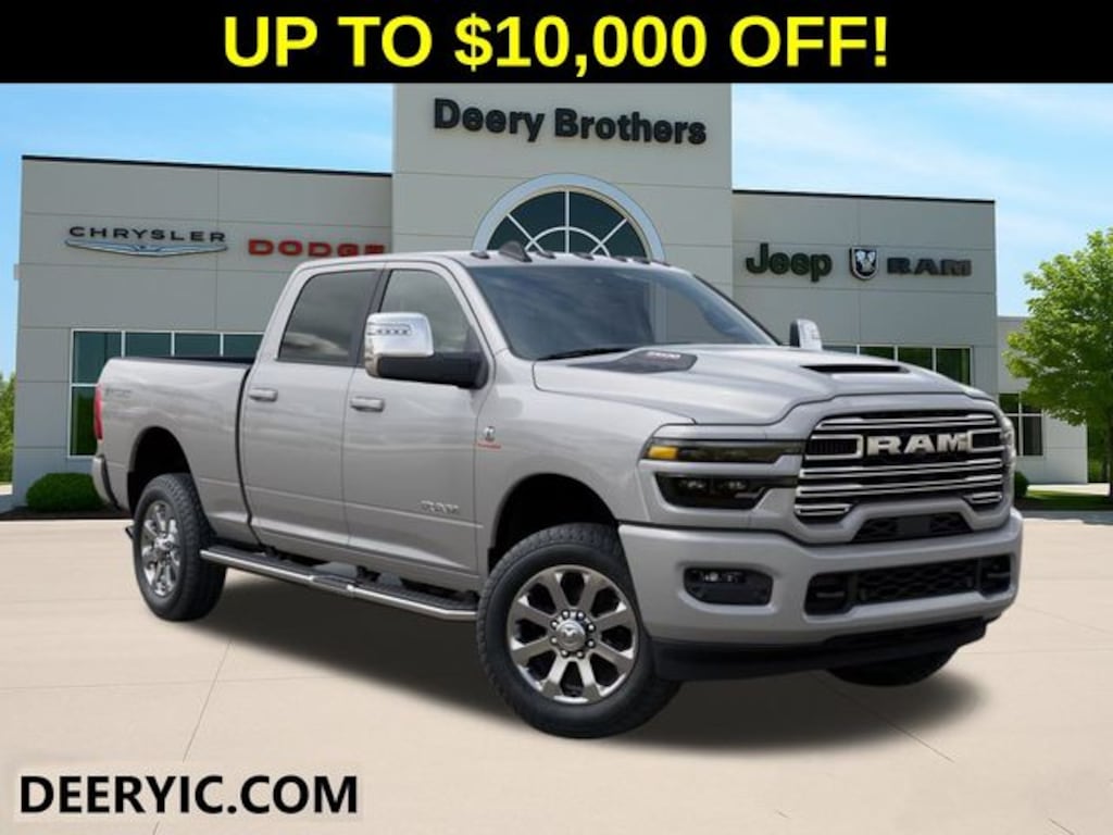 Cold Weather Group (Engine Block Heater and MOPAR Winter Front Grille Cover), Laramie Level 1 Plus Equipment Group (#1 Seat Foam Cushion, 115V Auxiliary Rear Power Outlet, 2 Way Rear Headrest Seat, 2nd Row in Floor Storage Bins, 4 Way Front Headrests, Active Lane Management System, Adaptive Steering System, Anti-Spin Differential Rear Axle, Auto Adjust in Reverse Exterior Mirrors, Auto Dim Exterior Mirror, Auto High Beam Headlamp Control, Auto Power-Folding Mirrors, Auto-Dimming Exterior Passenger Mirror, Bucket Seats, Center Stop Lamp with Cargo View Camera, Chrome Exterior Mirrors, Drowsy Driver Detection, Dual Wireless Charging Pad, Exterior Mirrors Courtesy Lamps, Exterior Mirrors with Heating Element, Exterior Mirrors with Memory, Exterior Mirrors with Supplemental Signals, Foam Bottle Insert (door Trim Panel), Folding Flat Load Floor Storage, Forward and Reverse Utility Lights, Front Seat Back Map Pockets, Full Length Upgraded Floor Console, Heated Front & Rear Seats, Heated Steering Wheel, High Back Seats, Leather Trimmed Bucket Seats, LED Bed Lighting, Mirror Running Lights, MOPAR Deployable Bed Step, MOPAR Spray in Bedliner, Power 2-Way Driver Lumbar Adjust, Power 2-Way Passenger Lumbar Adjust, Power Adjust 8-Way Driver Seat, Power Adjust 8-Way Front Passenger Seat, Power Adjust Mirrors, Power Adjustable Pedals with Memory, Power Heated Fold Telescopic Mirrors with Memory, Power Telescoping Mirrors, Power-Adjustable Convex Aux Mirrors, Radio/Driver Seat/Mirrors/Pedals Memory, Rain Sensitive Windshield Wipers, Rear 60/40 Folding Seat, Remote Tailgate Release, Traffic Sign Recognition, and Ventilated Front Seats), Quick Order Package 24H Laramie, Sport Appearance Package (20" x 8.0" Polished Aluminum Wheels, Body Color Grille-Surround, Center Hub, Sport Decal, and Sport Performance Hood), 10 Speakers, 4-Wheel Disc Brakes, 4G LTE Wi-Fi Hot Spot, 5th Wheel/Gooseneck Towing Prep Group, ABS brakes, Air Conditioning, Alexa Built-in, Alloy wheels, AM/FM radio: SiriusXM with 360L, Apple CarPlay, Apple CarPlay/Android Auto, Auto-dimming Rear-View mirror, Automatic temperature control, Black Wheel Center Hub, Brake assist, Bumpers: body-color, Chrome Flat Wheel-to-Wheel Side Steps, Clearance Lamps, Compass, Connected Travel and Traffic Services, Connectivity - US/Canada, Dash Pass Thru Wire Circuits, Delay-off headlights, Disassociated Touchscreen Display, Driver door bin, Driver vanity mirror, Dual front impact airbags, Dual front side impact airbags, Electronic Stability Control, Emergency Vehicle Alert System (EVAS), For Details, Visit DriveUconnect.com, For More Info, Call 800-643-2112, Front anti-roll bar, Front Center Armrest w/Storage, Front dual zone A/C, Front fog lights, Front License Plate Bracket, Front reading lights, Fully automatic headlights, Garage door transmitter, Global Telematics Box Module, Google Android Auto, GPS Antenna Input, GPS Navigation, HD Radio, Heated front seats, Heated power door mirrors, Heated steering wheel, Illuminated entry, Instrument Panel Mounted Auxiliary Switches, Integrated Voice Command with Bluetooth, Leather Trim 40/20/40 Bench Seat, Low tire pressure warning, Manufacturer's Statement of Origin, MyFlexCare Service Diesel, Navigation System, Occupant sensing airbag, Off-Road Info Pages, Outside temperature display, Overhead airbag, Overhead console, Panic alarm, ParkView Rear Back-Up Camera, Passenger door bin, Passenger vanity mirror, Power door mirrors, Power driver seat, Power passenger seat, Power steering, Power windows, Radio data system, Radio: Uconnect 5 Navigation with 12.0" Display, Rear anti-roll bar, Rear reading lights, Rear seat center armrest, Rear step bumper, Rear window defroster, Remote keyless entry, Security system, Selectable Price does not include Taxes, Tags, License, & Fees. Not all customers qualify for all rebates.$1000 - 2026 National Bonus Cash . Exp. 03/31/2026 $1,000 Deery Trade In Bonus Cash. Must have a qualified trade in. See Dealer for details.