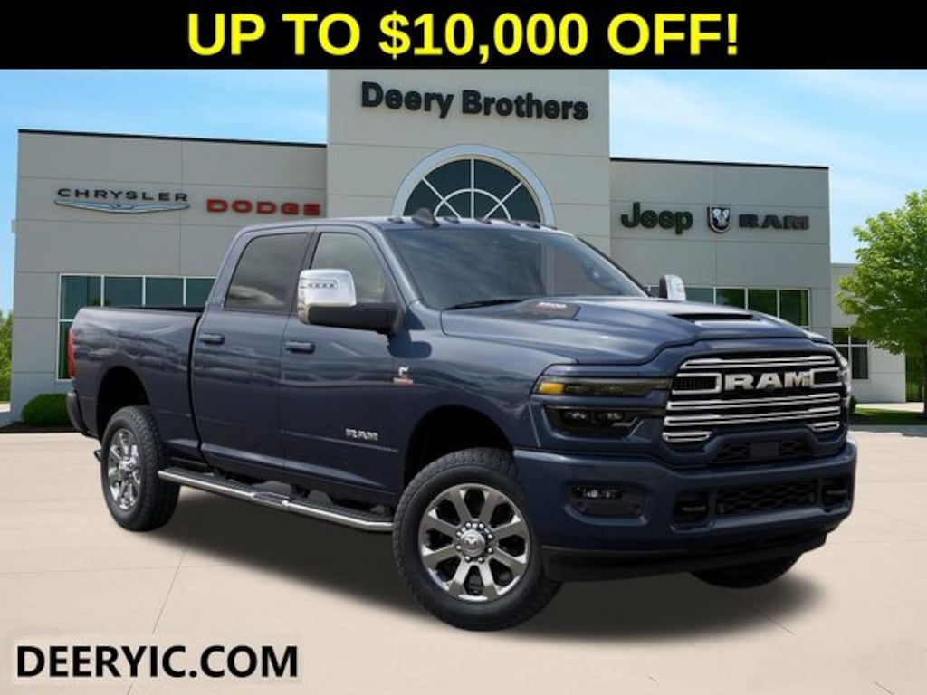 Cold Weather Group (Engine Block Heater and MOPAR Winter Front Grille Cover), Laramie Level 1 Plus Equipment Group (#1 Seat Foam Cushion, 115V Auxiliary Rear Power Outlet, 2 Way Rear Headrest Seat, 2nd Row in Floor Storage Bins, 4 Way Front Headrests, Active Lane Management System, Adaptive Steering System, Auto Adjust in Reverse Exterior Mirrors, Auto Dimming Exterior Passenger Mirror, Auto High Beam Headlamp Control, Auto Power-Folding Mirrors, Auto-Dimming Exterior Mirrors, Bucket Seats, Center Stop Lamp with Cargo View Camera, Chrome Exterior Mirrors, Drowsy Driver Detection, Dual Wireless Charging Pad, Exterior Mirrors Courtesy Lamps, Exterior Mirrors with Heating Element, Exterior Mirrors with Memory, Exterior Mirrors with Supplemental Signals, Foam Bottle Insert (door Trim Panel), Folding Flat Load Floor Storage, Forward and Reverse Utility Lights, Front Seat Back Map Pockets, Full Length Upgraded Floor Console, Heated Front & Rear Seats, Heated Steering Wheel, High Back Seats, Leather Trimmed Bucket Seats, LED Bed Lighting, Mirror Running Lights, MOPAR Deployable Bed Step, MOPAR Spray in Bedliner, Power 2-Way Driver Lumbar Adjust, Power 2-Way Passenger Lumbar Adjust, Power Adjust 8-Way Driver Seat, Power Adjust 8-Way Front Passenger Seat, Power Adjust Mirrors, Power Adjustable Pedals with Memory, Power Heat Fold Memory Telescopic Mirrors, Power Telescoping Mirrors, Power-Adjustable Convex Aux Mirrors, Radio/Driver Seat/Mirrors/Pedals Memory, Rain Sensitive Windshield Wipers, Rear 60/40 Folding Seat, Remote Tailgate Release, Traffic Sign Recognition, and Ventilated Front Seats), Quick Order Package 24H Laramie, Sport Appearance Package (20" x 8.0" Polished Aluminum Wheels, Body Color Grille Surround, Center Hub, Sport Decal, and Sport Performance Hood), 10 Speakers, 4-Wheel Disc Brakes, 4G LTE Wi-Fi Hot Spot, 5th Wheel/Gooseneck Towing Prep Group, ABS brakes, Air Conditioning, Alexa Built-in, Alloy wheels, AM/FM radio: SiriusXM with 360L, Apple CarPlay, Apple CarPlay/Android Auto, Auto-dimming Rear-View mirror, Automatic temperature control, Black Wheel Center Hub, Brake assist, Bumpers: body-color, Chrome Flat Wheel-to-Wheel Side Steps, Clearance Lamps, Compass, Connected Travel and Traffic Services, Connectivity - US/Canada, Dash Pass Thru Wire Circuits, Delay-off headlights, Disassociated Touchscreen Display, Driver door bin, Driver vanity mirror, Dual front impact airbags, Dual front side impact airbags, Electronic Stability Control, Emergency Vehicle Alert System (EVAS), Front anti-roll bar, Front Center Armrest w/Storage, Front dual zone A/C, Front fog lights, Front License Plate Bracket, Front reading lights, Fully automatic headlights, Garage door transmitter, Global Telematics Box Module, Google Android Auto, GPS Antenna Input, GPS Navigation, HD Radio, Heated front seats, Heated power door mirrors, Heated steering wheel, Illuminated entry, Instrument Panel Mounted Auxiliary Switches, Integrated Voice Command with Bluetooth, Leather Trim 40/20/40 Bench Seat, Low tire pressure warning, Manufacturer's Statement of Origin, MOPAR Front and Rear Rubber Floor Mats, MyFlexCare Service Diesel, Navigation System, Occupant sensing airbag, Off-Road Information Pages, Outside temperature display, Overhead airbag, Overhead console, Panic alarm, ParkView Rear Back-Up Camera, Passenger door bin, Passenger vanity mirror, Power door mirrors, Power driver seat, Power passenger seat, Power steering, Power windows, Radio data system, Radio: Uconnect 5 Navigation with 12.0" Display, Rear reading lights, Rear seat center armrest, Rear step bumper, Rear window defroster, Remote keyless entry, Security system, Selectable Tire Fill Alert, SiriusXM Radio Service, SiriusXM with 360L, Speed control, Spli Price does not include Taxes, Tags, License, & Fees. Not all customers qualify for all rebates.$1000 - 2026 National Bonus Cash . Exp. 03/31/2026 $1,000 Deery Trade In Bonus Cash. Must have a qualified trade in. See Dealer for details.