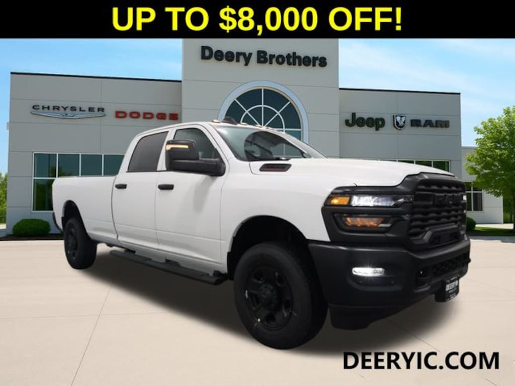Bright White Clearcoat 2026 Ram 3500 Tradesman 4D Crew Cab 6.4L V8 8-Speed Automatic 4WD Price does not include Taxes, Tags, License, & Fees. Not all customers qualify for all rebates.$1000 - 2026 National Bonus Cash . Exp. 03/02/2026 $1,000 Deery Trade In Bonus Cash. Must have a qualified trade in. See Dealer for details. 2026On-The-Job $500 Commercial Equipment/Upfit. May not be able to combine with other offers. Not everybody will qualify. See dealer for details.