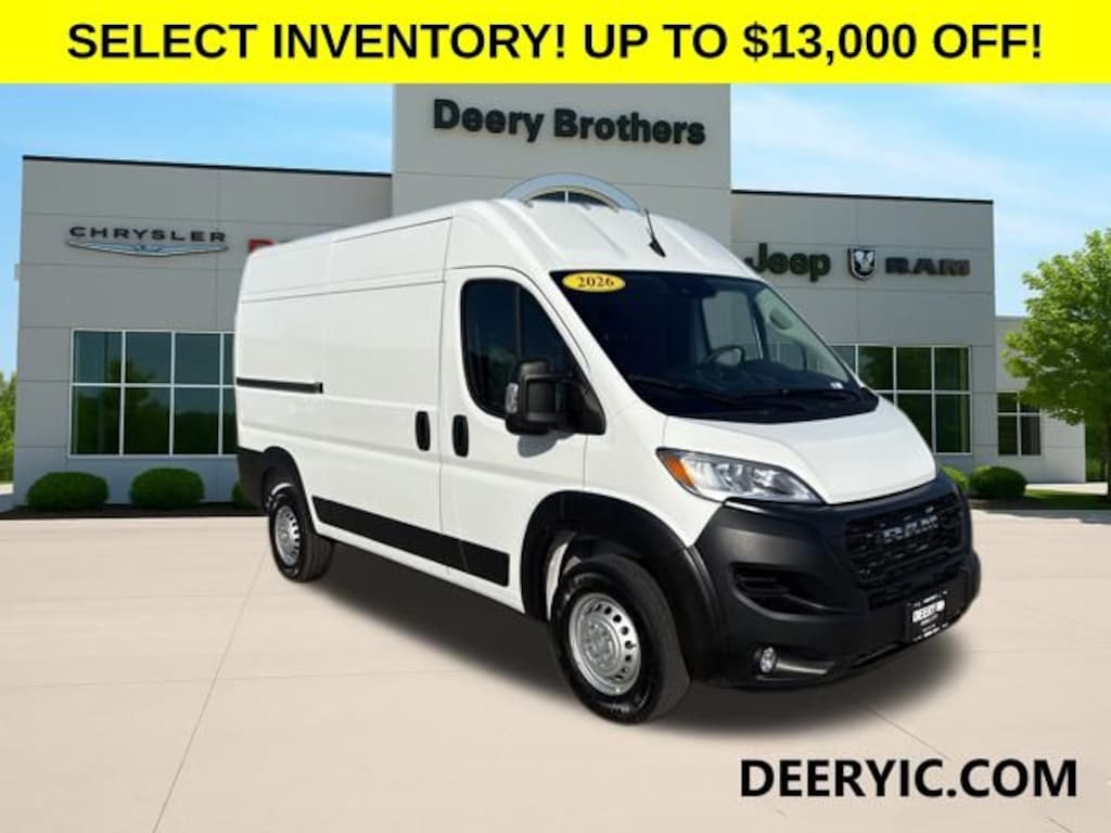 Bright White Clearcoat 2026 Ram ProMaster 1500 Base 3D Cargo Van 3.6L V6 24V VVT 9-Speed 948TE Automatic FWD Price does not include Taxes, Tags, License, & Fees. Not all customers qualify for all rebates.$1500 - 2026 National Bonus Cash . Exp. 01/05/2026 2025 On-The-Job $1000 Commercial Equipment/Upfit. May not be able to combine with other offers. Not everybody will qualify. See dealer for details. $2,000 National Holiday Select Inventory Bonus Cash. May not be compatible with other programs. Not all buyers will qualify. Exp. 01/05/2025 $5,000 44CSJ1 Ram Professional Commercial Product Bonus Cash Coupon Stack. May not combine with other programs. Not everyone will qualify. While supplies last. See dealer for details. $1,000 Deery Trade In Bonus Cash. Must have a qualified trade in. See Dealer for details.