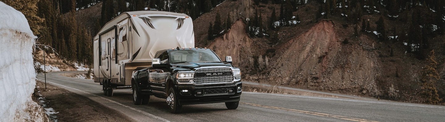 If you require maximum towing and payload capabilities, the new RAM 3500 delivers uncompromising heavy-duty performance. The RAM 3500's base engine is a 6.4-liter engine V8 making 405 horsepower and 429 pound-feet of torque. An available 6.7-liter turbodiesel inline-six powertrain puts out 430 horsepower and 1,075 pound-feet of torque. With its stronger foundation and available dual-rear-wheel configuration, the RAM 3500 effortlessly manages the most demanding applications including fifth-wheel campers, gooseneck trailers, and commercial equipment.