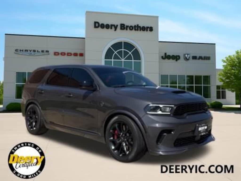 One-Owner and Clean Carfax! This locally traded Durango Hellcat was sold here new and comes back in excellent condition. With low miles and a spotless history, this is your chance to own a super clean, hard-to-find Hellcat Durango!, ** Deery Certified, ** Class IV Receiver-Hitch, ** Blind Spot w. Trailer Detection, ** Lane-Departure Warning Plus, ** Full-Speed Forward-Collision Warning Plus, ** Adaptive Cruise Control w. Stop, AWD, 19 harman/kardon Amplified Speakers w/Subwoofer, 3rd row seats: split-bench, 825 Watt Amplifier, Advanced Brake Assist, Apple CarPlay/Android Auto, Black Package, Eclipse Black Exhaust Tips, Forged Carbon Fiber Interior Accents, Gloss Black Exterior Mirrors, Gray Metallic Badges, Heated front seats, Heated rear seats, High Performance Laguna Leather Seats, Memory seat, Navigation system: TomTom, Power Liftgate, Power Sunroof, Quick Order Package 2XY Hellcat Premium, Red Seat Belts, Satin Black Dodge Tail Lamp Badge, Suede Headliner, Ventilated front seats, Wheels: 20" x 10" Lights Out Aluminum.