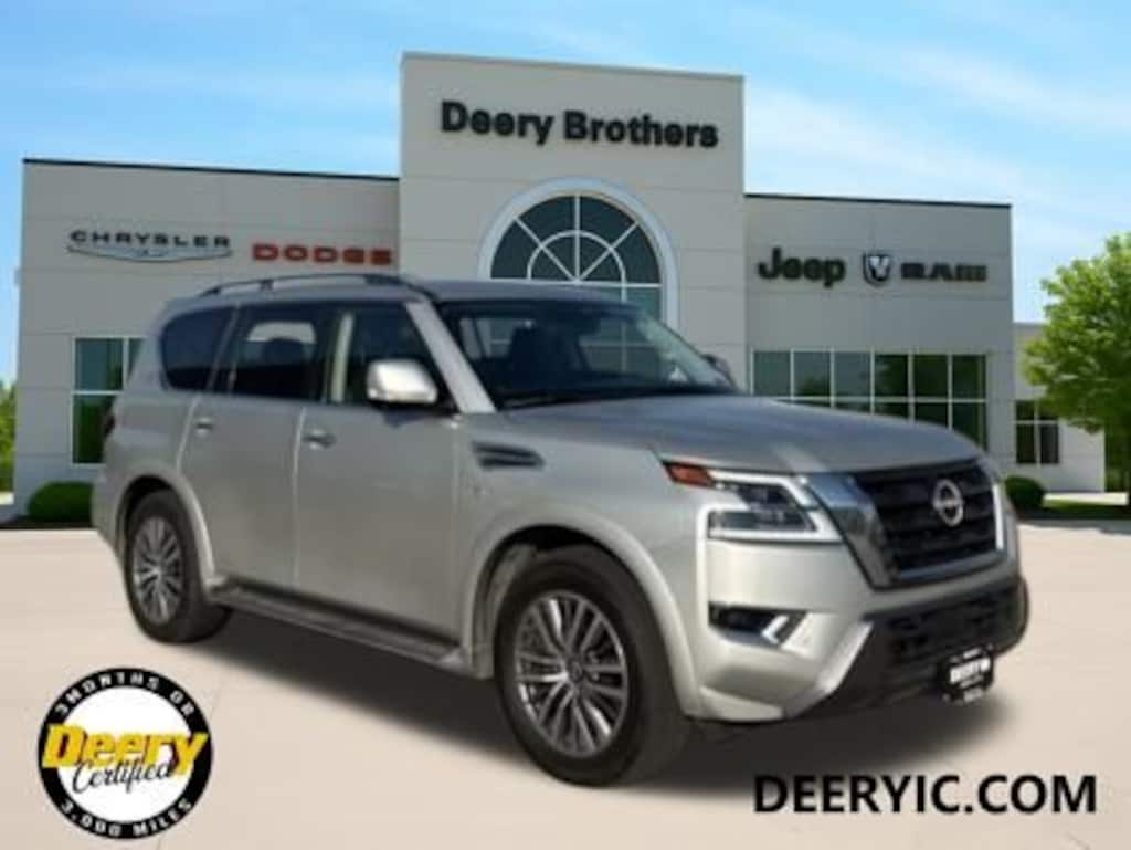 Certified. Certification Program Details: Certification program details: Deery Certified Pre-Owned Details. *$0 Deductible ** 3 Months or 3,000 Miles (whichever comes first ) ** Systems Covered - Gasoline/ Diesel Engine , Transmission , Drive Axle, Hybrid Components , Filters, Lubricants & Taxes and Seals and Gaskets ** See Dealer for More Information. Recent Arrival! Brilliant Silver Metallic 2021 Nissan Armada SL 4D Sport Utility 5.6L V8 DOHC 32V LEV3-ULEV125 400hp 13/18 City/Highway MPG 7-Speed Automatic 4WD