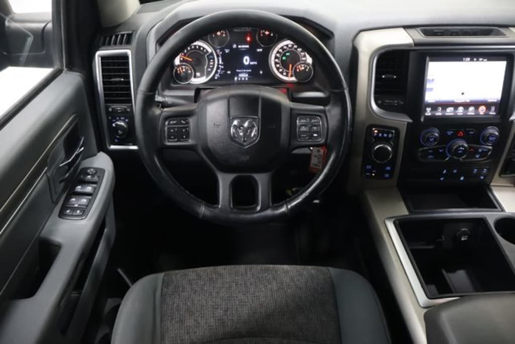 ** Local Trade In, ** Clean CARFAX, ** Deery Certified, 115V Auxiliary Power Outlet, 40/20/40 Split Bench Seat, Bighorn Badge, Class IV Receiver Hitch, Comfort Group, Fog Lamps, Front Armrest w/3 Cupholders, GPS Navigation, HD Radio, Heated Front & Rear Seats, Heated Steering Wheel, Integrated Voice Command w/Bluetooth, Luxury Group, Overhead Console w/Garage Door Opener, ParkSense Front/Rear Park Assist System, ParkView Rear Back-Up Camera, Power 10-Way Driver Seat, Power Heated Fold-Away Mirrors, Power Lumbar Adjust, Premium Cloth 40/20/40 Bench Seat, Quick Order Package 26Z Big Horn, Radio: Uconnect 8.4AN AM/FM/SXM/HD/BT/NAV, Rear Camera & Park Assist Group, Rear-View Auto-Dimming Mirror w/Microphone, Remote SD Card Slot, Remote Start & Security Group, Remote Start System, Spray In Bedliner, Steering Wheel Mounted Audio Controls, Uconnect Voice Command w/Bluetooth, Wheels: 20" x 8" Aluminum Chrome Clad.