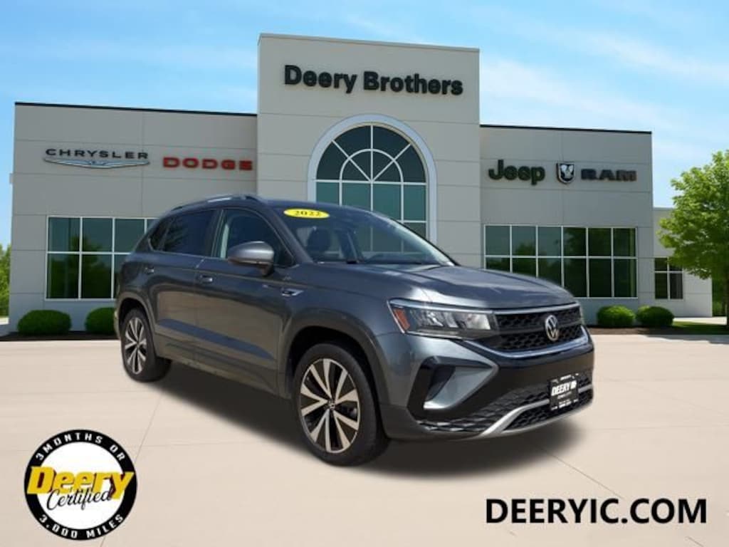Certified. Gray 2022 Volkswagen Taos 1.5T SE 4D Sport Utility 1.5L I4 Turbocharged DOHC 16V LEV3-SULEV30 158hp 25/32 City/Highway MPG 7-Speed DSG Automatic with Tiptronic AWD